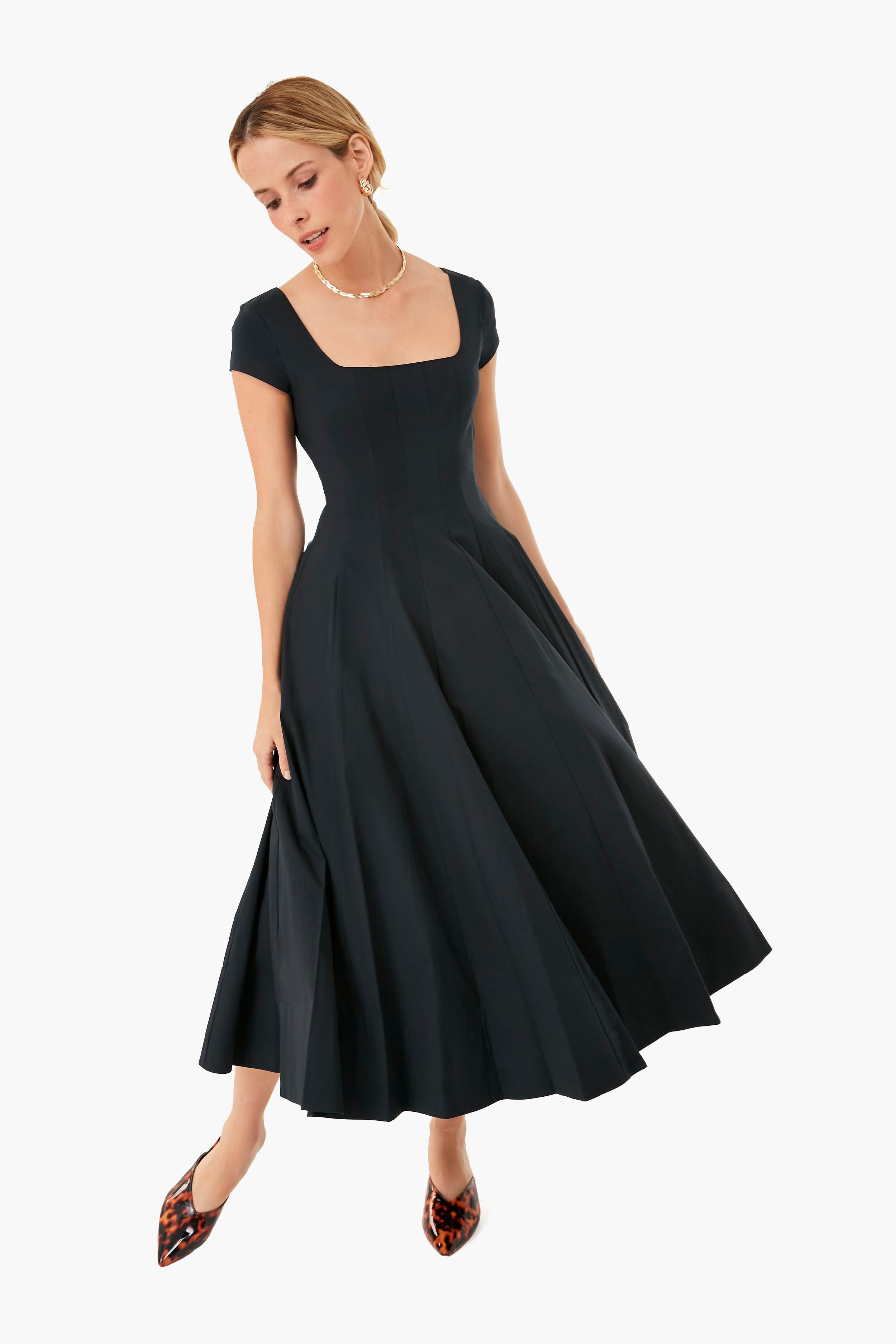 Black Embroidered Flowers Topstitching Long Sleeve Mini Dress
