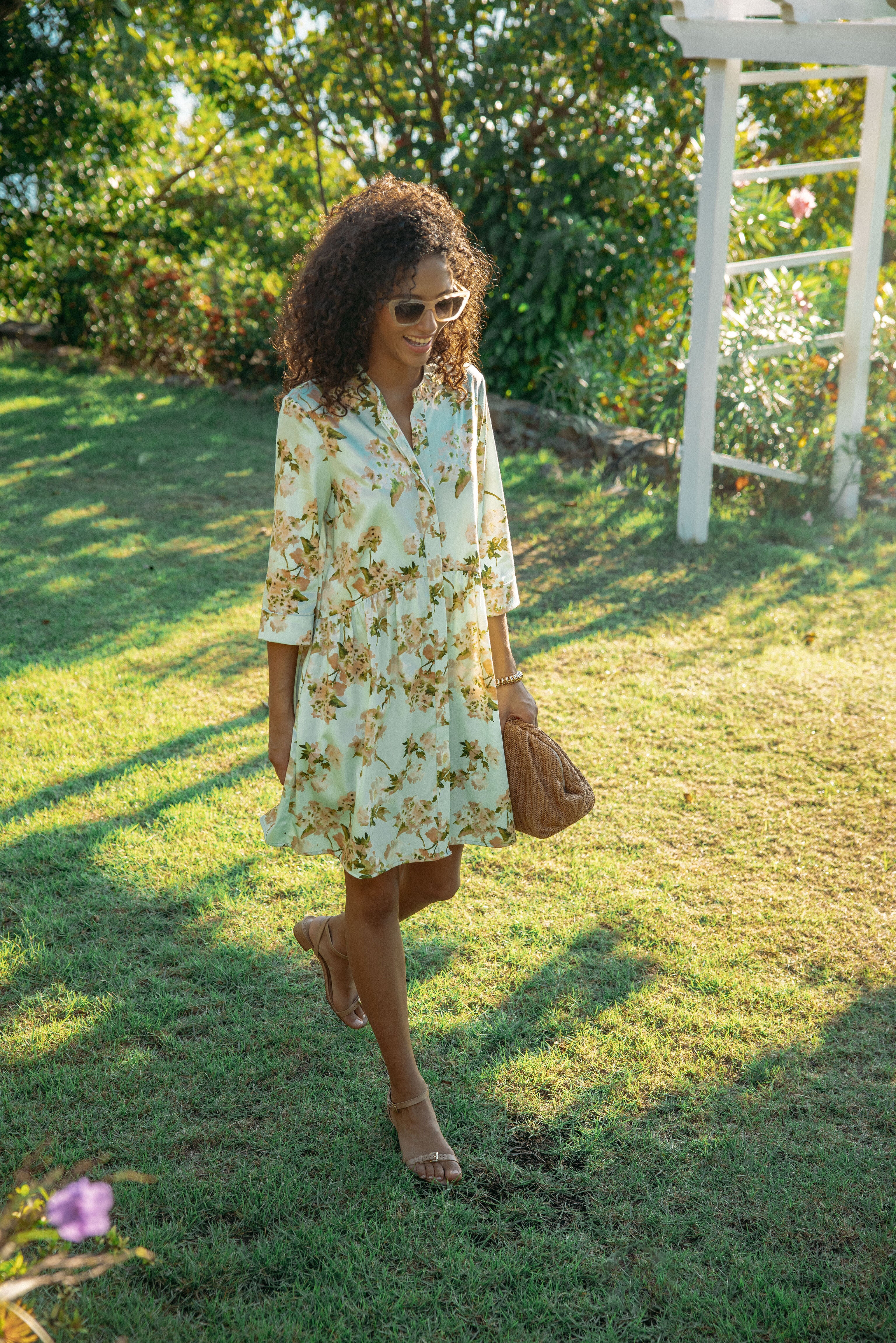 This beautifully printed silhouette is made for your closet! The Aqua Watercolor Royal Shirt Dress is amazingly lightweight and a perfect transition piece that is easy to accessorize. Featuring a round neckline. three-quarter sleeves. and a front button placket. this mini is flattering and flirty. Style with sandals and a tote for strolling around town. or with espadrilles and gold jewelry for an elevated dinner look.