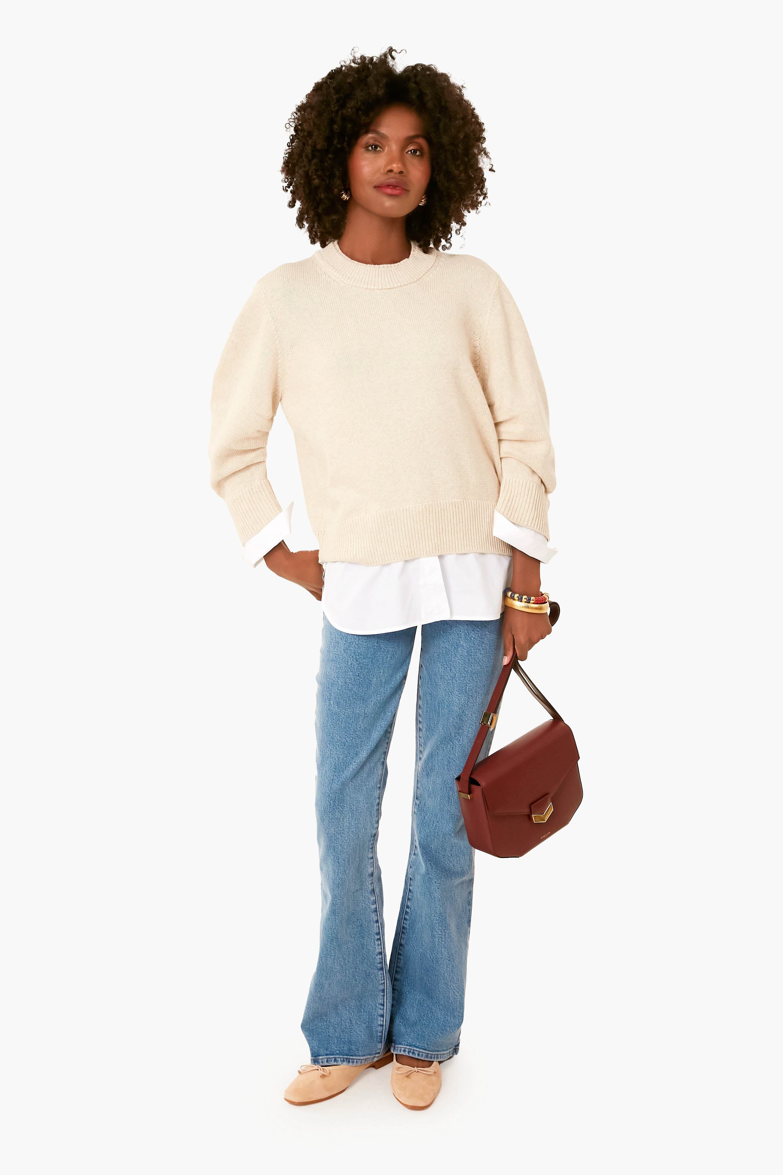 The Bisque White Raya Ruched Crew Looker is the epitome of relaxed femininity. In an effortless. prelayered silhouette with ruched sleeves. this luxe cotton-cashmere blend sweater creates a casual chic look. Perfect to wear to the office. to brunch. or just around the house. this style is sure to become a favorite!