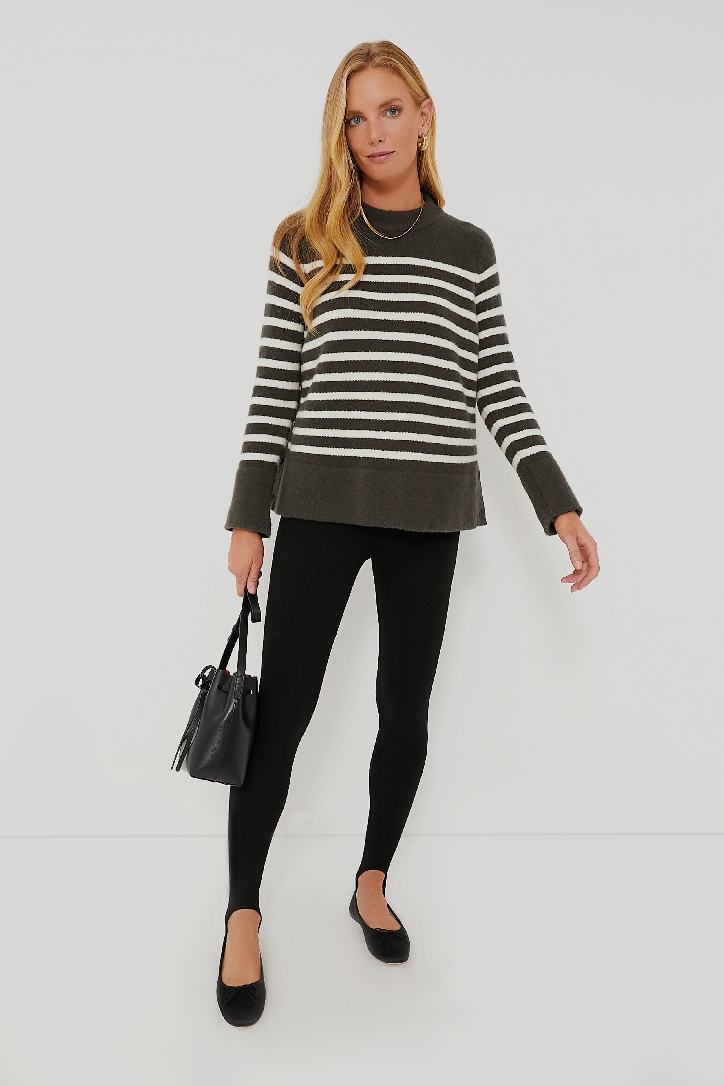 A true classic that keeps things elevated yet comfortable. the Black Rib Leggings are a must-have. Finished with a stirrup hem that adds a touch of vintage style. while also ensuring a secure fit that won't move around awkwardly throughout the day. these are made to be worn with dressier heels. riding boots. or even comfy sneaks for a stylish look!