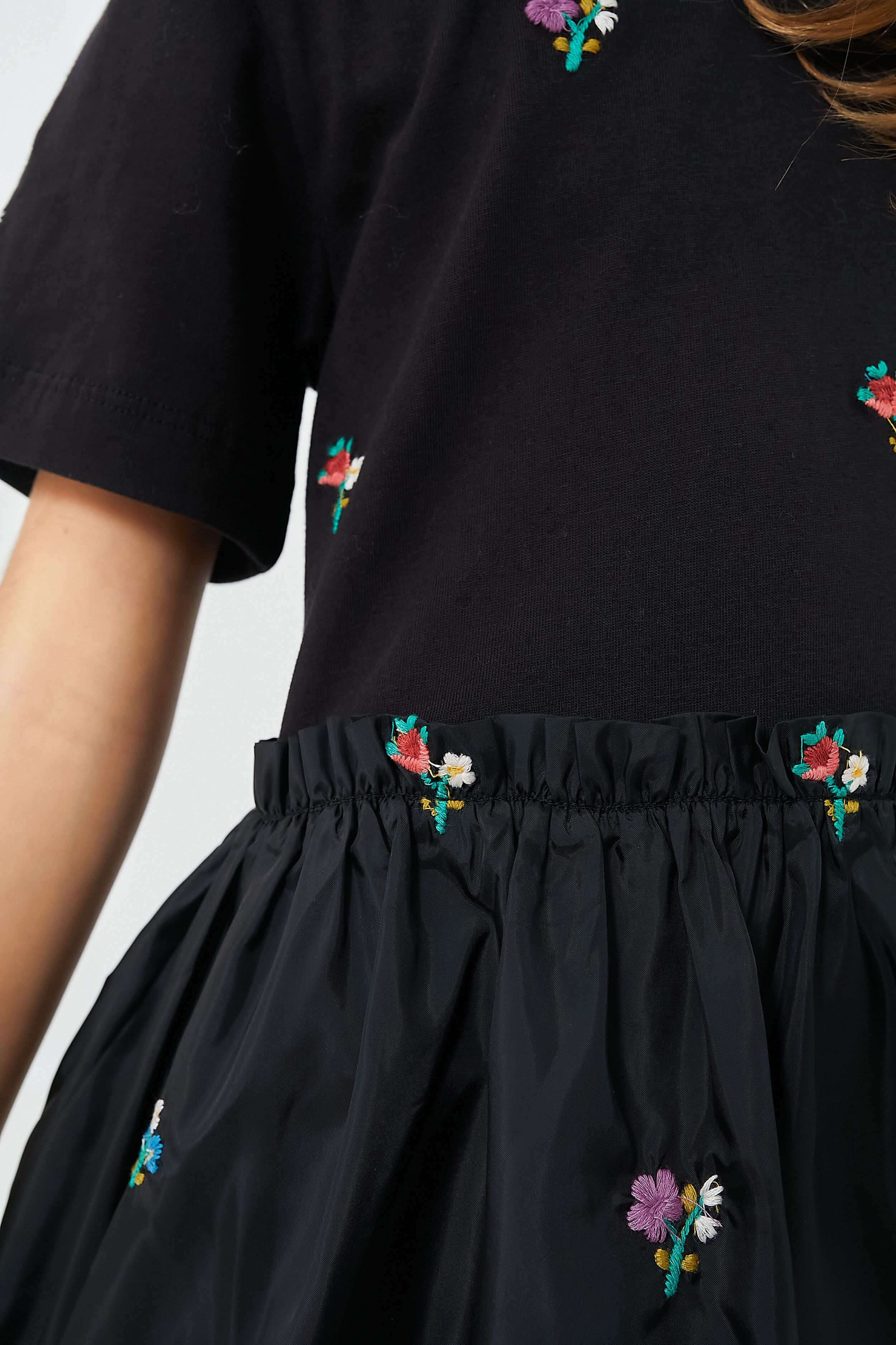- Floral embroidery throughout