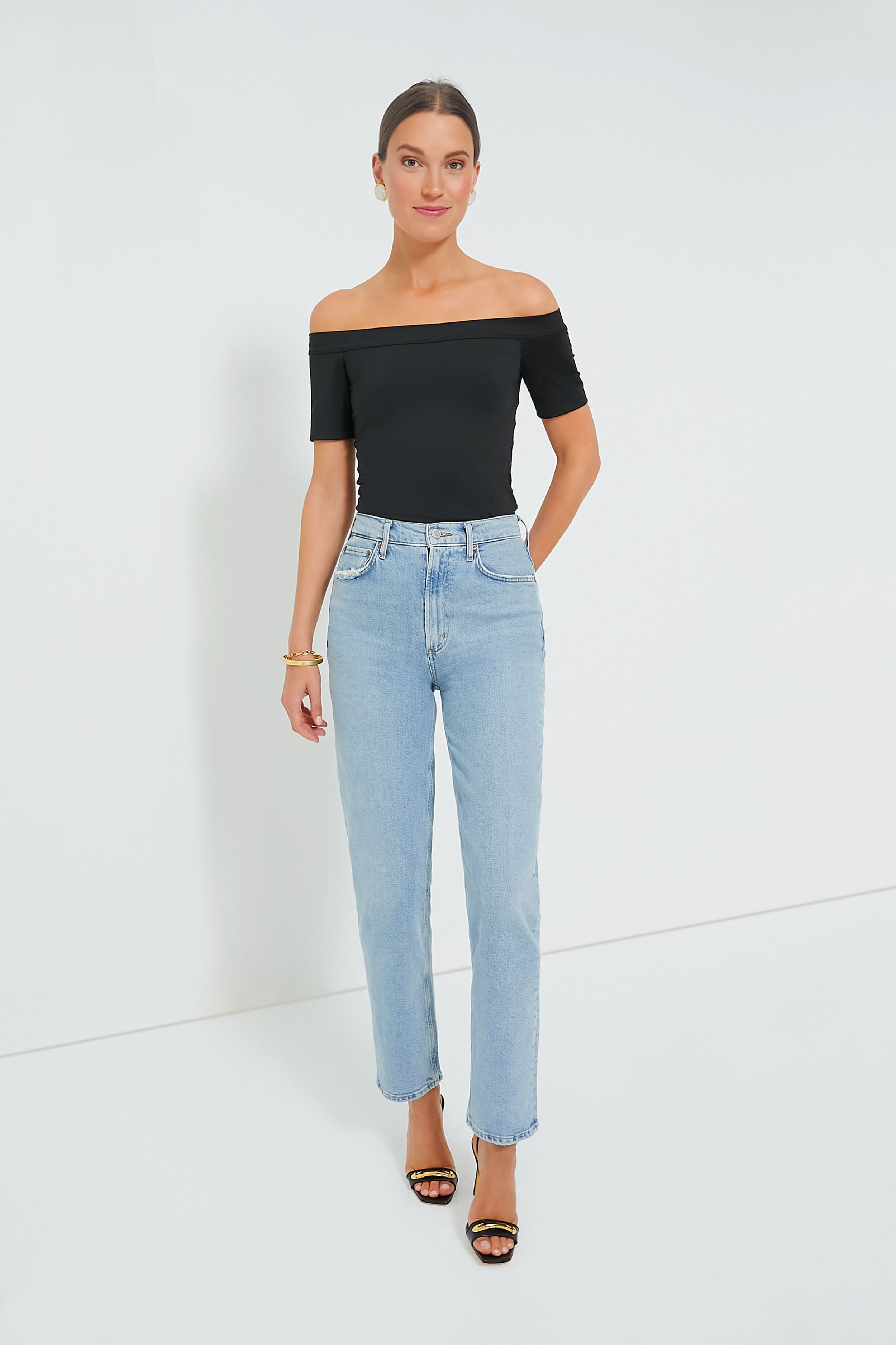 Elevate your basics with the Black Short Sleeve Laila Top. Featuring an off the shoulder neckline that paints a sultry moment and a slim fit body that feels like a second skin. this lightweight soft stretch shirt is the blank canvas your wardrobe has been missing. Perfect for tucking into everything from skirts to pants. this will quickly become a core addition to your wardrobe.