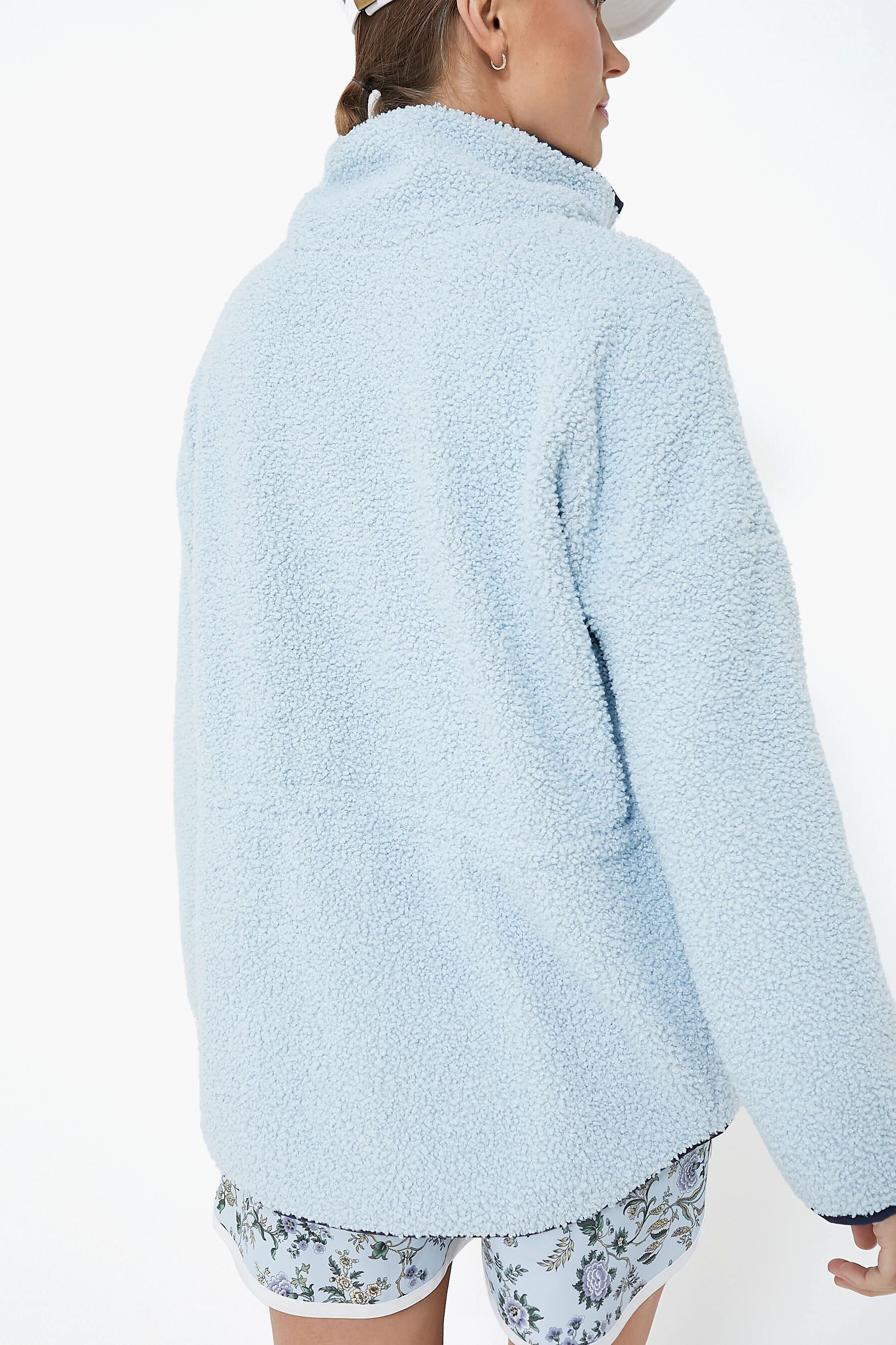 The Light Blue Cinched Teddy Natalie Quarter Zip is oh-so-comfy and chic! This pullover features a super-soft material with functional details such as the zip neck and adjustable drawstring waist for perfect fit. Wear with denim on chilly fall walks. or with a tennis skirt and sneakers in the summer.