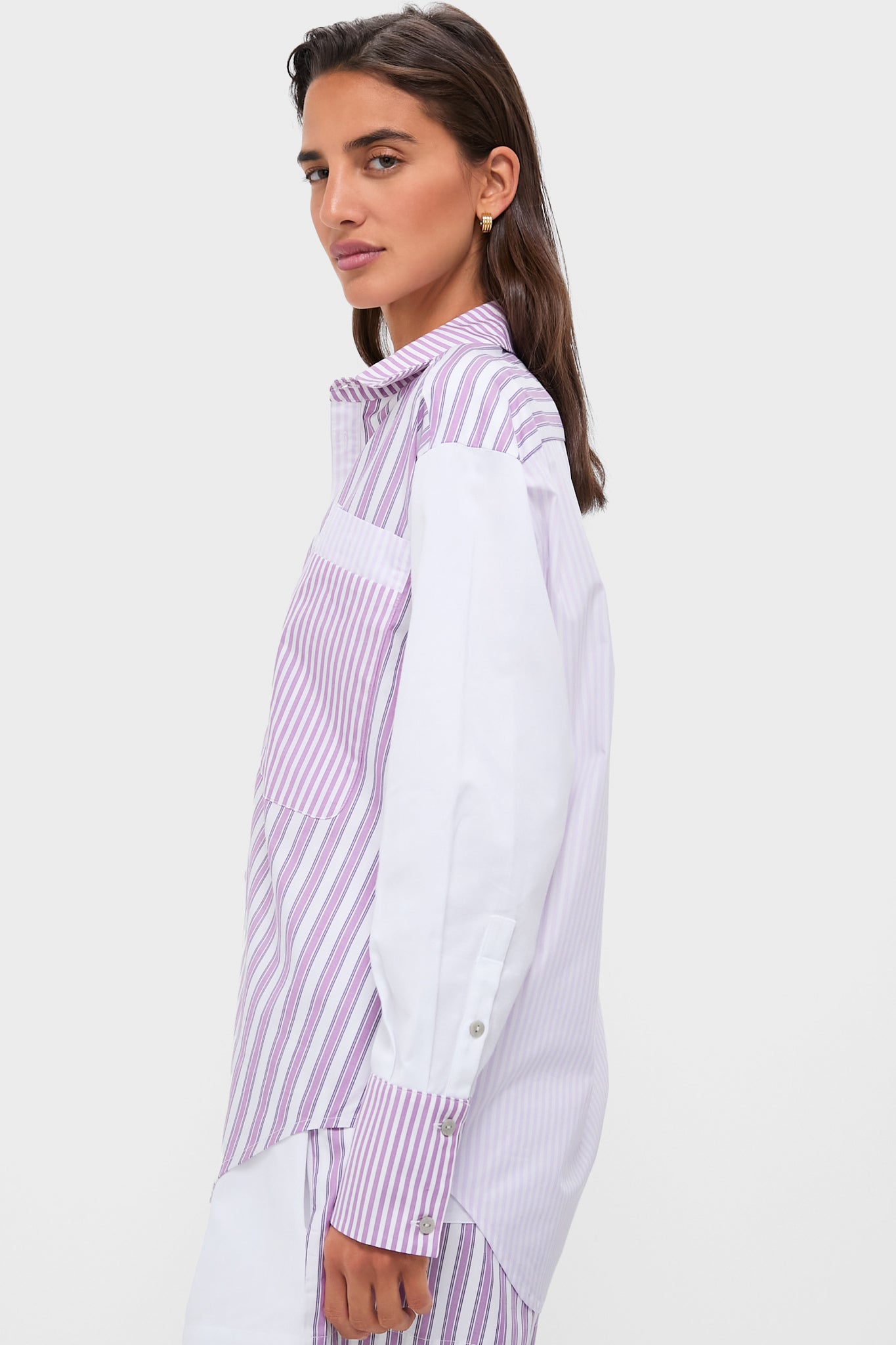 The Mil Rayas Lila Norte Blouse brings a fresh pop of purple to your warm-weather wardrobe with its mix of vertical stripes in an effortlessly oversized fit. Paired with the matching White Mil Rayas Lila Pachuca Short. it's a set that feels casual but looks put-together. Style it with sandals and a tote for anything from errands to outdoor brunches.